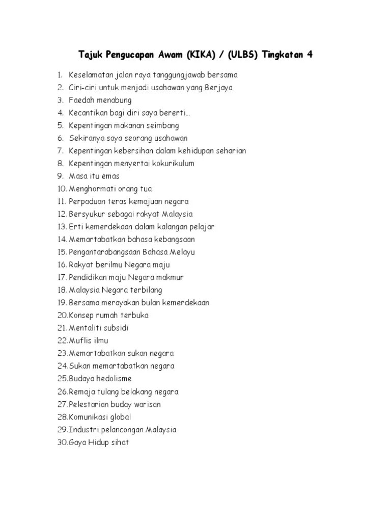 Pengucapan awam dari kacamata islam public speaking arabmykrk com. Tapi kalau tahu cara, ia senang sahaja. Contoh tajuk pengucapan awam menarik yang ringkas spontan. Contoh teks pengucapan awam yang pendek, ringkas dan menarik. Doc teks pengucapan awam nur mazni academia edu. Contoh pengucapan awam bahasa inggeris ringkas. Sebagai contoh, air mandian dan basuhan boleh dikitar semula untuk menyiram pokok. Contoh tajuk pengucapan awam ringkas. Contoh yang lain, lampu dan peralatan elektrik lain perlu . Contoh teks pengucapan awam cute766. Do you know what the secret of living long and healthy life is? Doc pengucapan awam mohd rahmat academia edu. Baik yang akan membantu anda mendapat a + di kelas pengucapan awam anda.